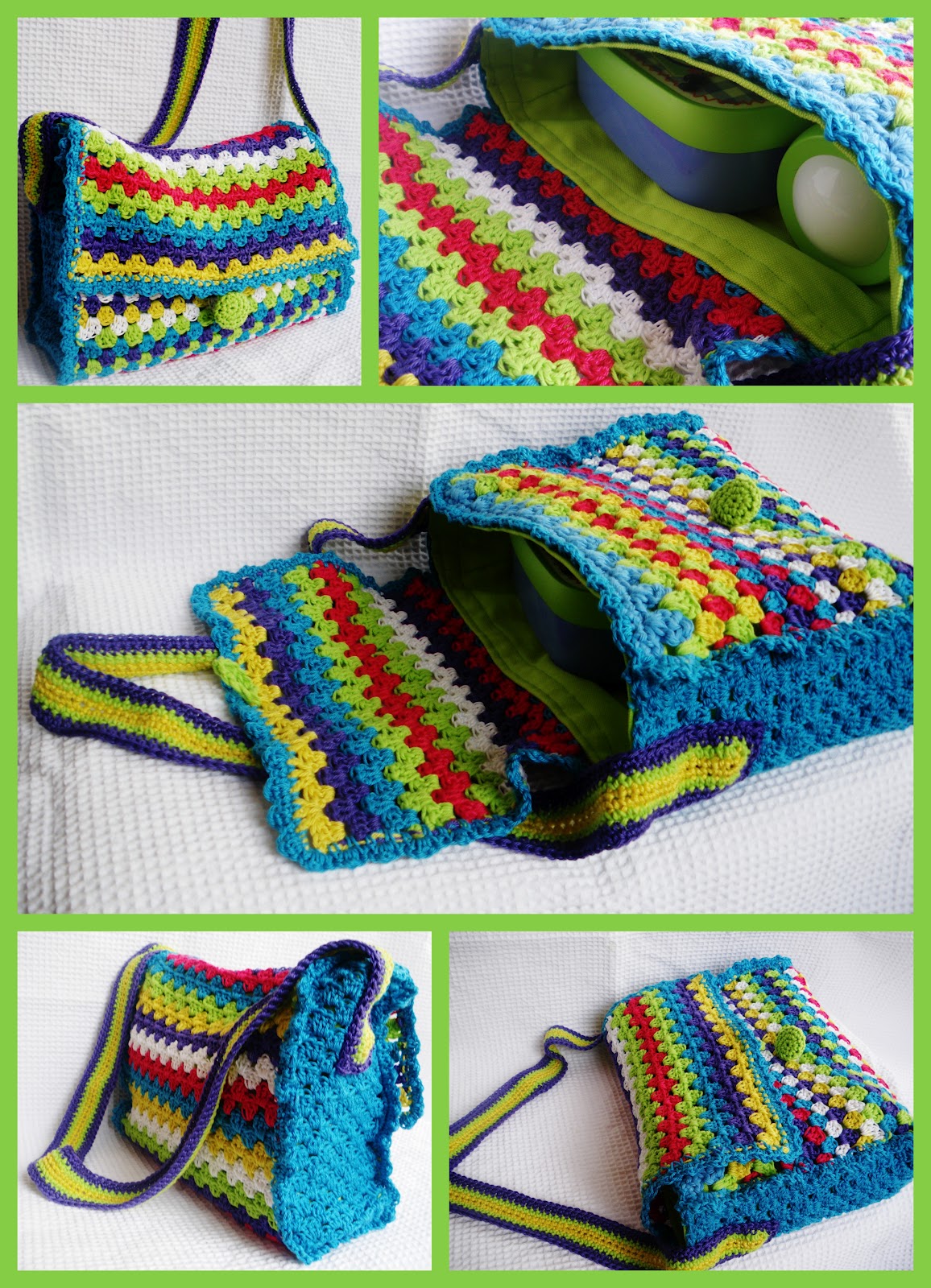 Wat een leuke dingen komen hier langs! Channy, gave tas! Mooie kleuren ook! Tessa, wow, prachtige deken! Angelique, nog even en je hebt een hele boerderij bij elkaar gehaakt! Spatje, volgens mij vind je de beschrijving van de binnenkant ook bij de beschrijving van die tas (die staat ook nog op mijn verlanglijstje ). |