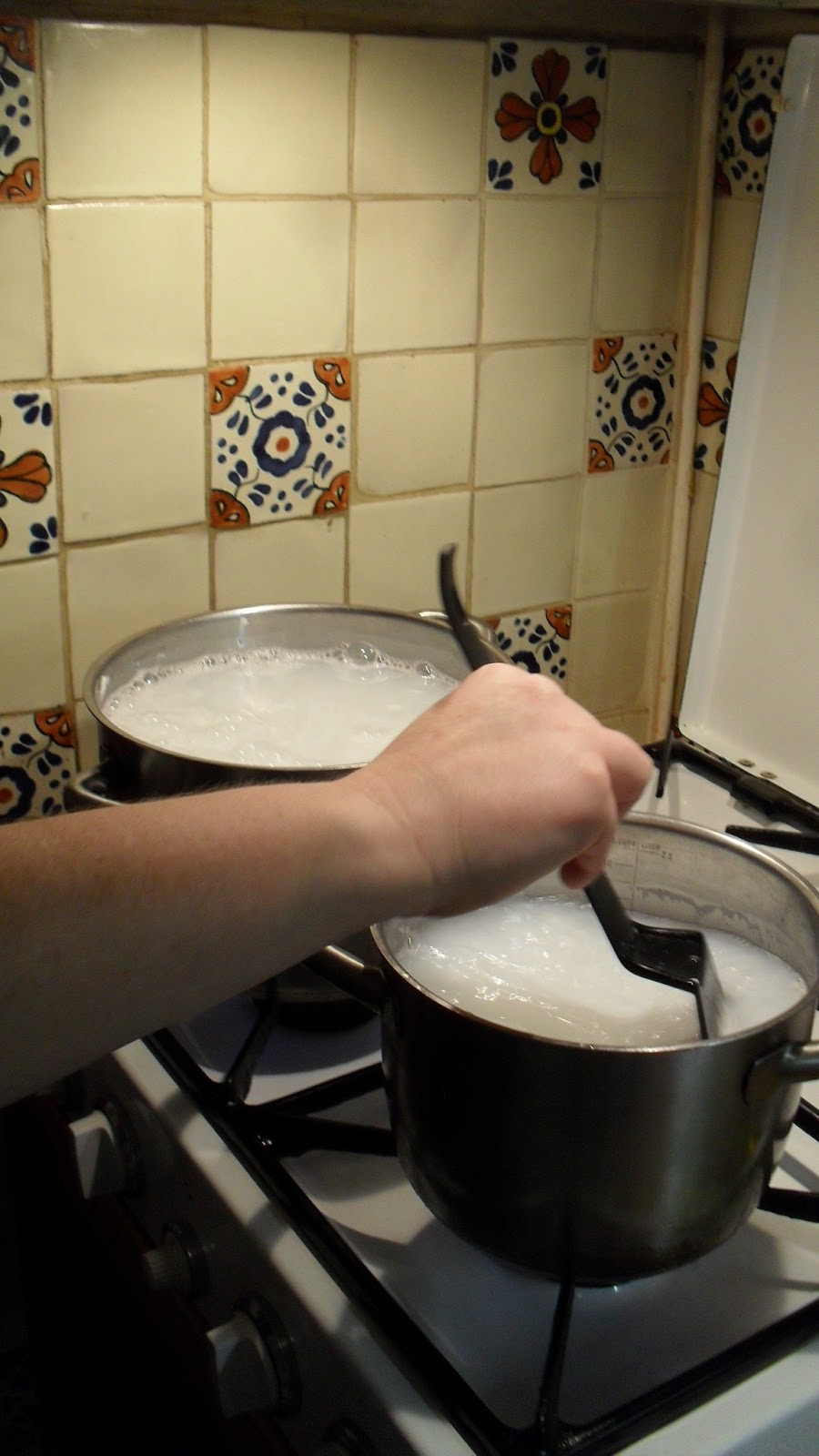 het gedaan! Zelfs de eerst gewassen was hangt al redelijk neutraal en schoon riekend aan de lijn. Hier het recept zoals ik het gemaakt heb: 150 gram sunlight zeep 150 soda 10 liter water 2 liter water Eerst de zeep raspen: De rasp in de pan doen en tien liter water erbij doen: Op het vuur zetten en zachtjes blijven roeren tot het kookt: Als de zeep opgelost is de soda er bij doen en nog even door roeren: In een grote emmer gieten met twee liter gekookt water extra erbij. Af en toe roeren in de emmer en een nacht laten staan. Je hebt dus twaalf liter wasmiddel waarvan aangeraden wordt om hiervan 200 ml te gebruiken per keer. |