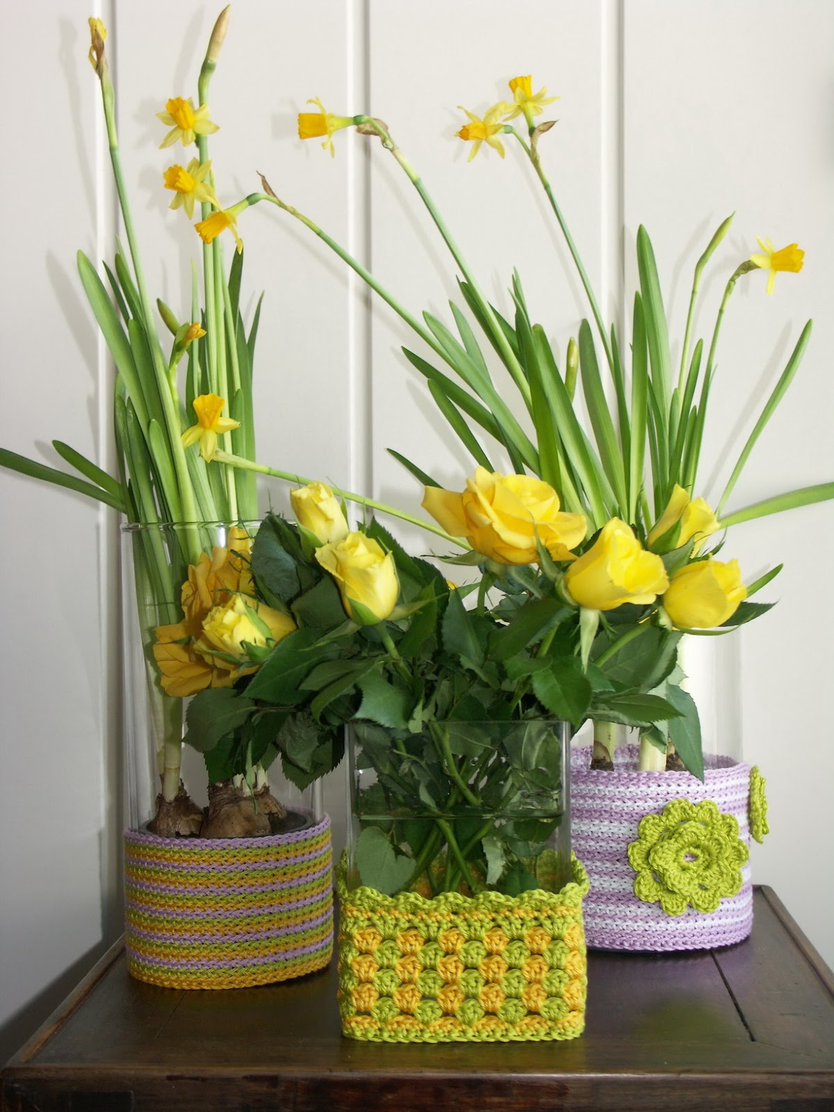 Ja, heb weer wat nieuwe dingetjes gehaakt! Ik kreeg er zin in door het mooie weer van de afgelopen dagen: ![]() Dit zijn vazen van de Ikea (de Cylinder en de Rektangel), en natuurlijk kan dit in bijna alle kleuren gemaakt worden. Zo krijg ik zin in lente, laat het goede weer maar komen! :d |